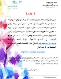 تعلن الإدارة العامة للتعليم بالمنطقة الشرقية عن توفر عدد من الوظائف بمسمى سائق و عامل على بند الأجور بالفئة أ على النحو التالي.