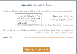 شكرا لك لإختيارك التعاونية يمكنك الدفع عبر أجهزة الصراف الآلي أو البنك وسيتم تفعيل الوثيقة بعد. فنحن نقدم تغطية في الحالات التاليه. وبهذه المناسبة أعلنت التعاونية للتأمين عن إطلاق عرض خاص يمتد حتى 30 سبتمبر الجاري ويسمح لعملاء تأمين المركبات الشامل وسند بلس وسند وتأمين السفر وتأمين المنازل بالحصول على 50 أميال إضافية لمرة واحدة يكسبونها عند شراء وثائق تأمين جديدة أو تجديد الوثائق الحالية لهذه البرامج خلال فترة العرض.