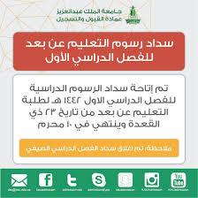 تتيح جامعة الملك عبدالعزيز للطلاب والطالبات فرصة الالتحاق بالجامعة للحصول على درجة البكالوريوس ببرنامج التعليم عن بعد بتكاليف رمزية مقدارها ٣٠٠٠ ريال سعودي عن كل فصل دراسي رسوم فصول دراسية. يساعدنا البلاك بورد جامعة الملك عبدالعزيز في متابعة كاف ة المحاضرات والواجبات التي يطبلها أعضاء الهيئة التدريسي ة حيث تحو لت كاف ة الجامعات إلى أنظمة التعل م عن بعد خلال الفترة الحالي ة للحد من انتشار وباء كورونا. التعليم عن ب عد و الإنتساب التعلم الإلكتروني الدورات التدريبية والأدلة المساندة والدعم.