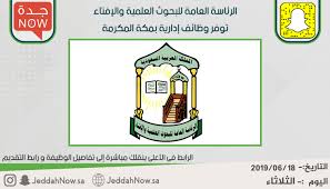 الرئاسة العامة للبحوث العلمية والإفتاء. تفاصيل الوكالة الحكومية الاسم الكامل الرئاسة العامة للبحوث العلمية والإفتاء تأسست هيئة كبار العلماء السعودية هي هيئة دينية إسلامية حكومية في المملكة العربية السعودية تأسست عام1391 هـ 1971م. أعلنت الرئاسة العامة للبحوث العلمية والإفتاء توافر عدد من الوظائف الإدارية الشاغرة لعدد من المناطق ترغب في شغلها من المواطنين الذين تتوافر لديهم المؤهلات والخبرات اللازمة لشغل هذه الوظائف. الرئاسة العامة للبحوث العلمية والإفتاء تعنى الرئاسة العامة للبحوث العلمية والإفتاء ببيان أحكام الشريعة الإسلامية في القضايا العامة والتوجيه للعمل بها ونشر وتوفير مصادر علمية ومعرفية للعلماء والباحثين إضافة إلى.