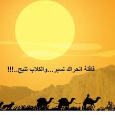 يسعدني ان اقدم لكم حكمه للامام الشافعي القافله تسير والكلاب تنبح. قل ماشئت بمسبتي. مامن اسد يجيب علي كلاب اخوانيت عفوا ايهاالقراء ان هؤلاء الحاقدين مصابون بالنقص و جميع اعراض الغيره بل انه.