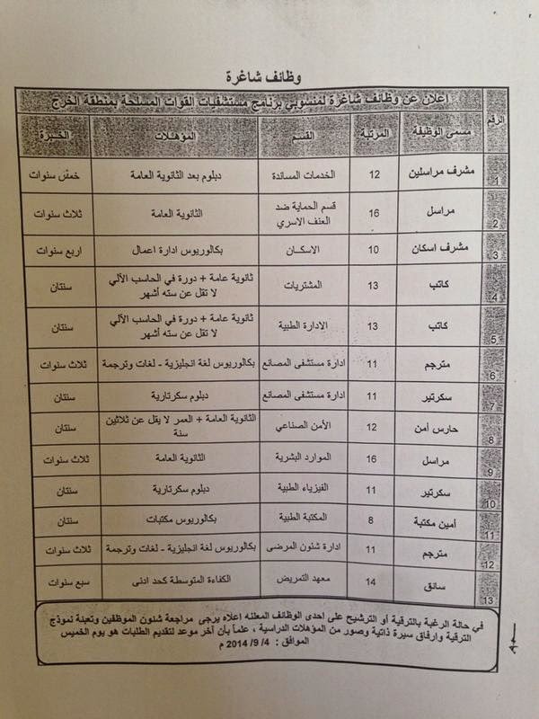 وبينت الإدارة أن الوظائف المتاحة وفق المسميات التالية. وظائف القوات المسلحة في الامارات شروط التقديم شهادة جامعية أو شهادة الدبلوم مصدقة ومعتمدة من الجهات الرسمية بالدولة في المجالات اعلاه. أخصائي طب الأسرة عدد 9 وظائف للسعوديين.