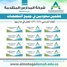 شركة المدارس المتقدمة شركة تعليمية تضم أكثر من 18 مجمعا تعليميا أهليا وعالميا ومسارا مصريا وتحفيظ و مدارس المتقدمة للتعلم الذكي والتي تعد الأولى من نوعها التي تدرس بمنهجية stem.