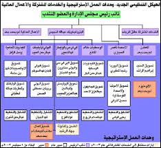 الهيكل التنظيمي أو النظام المؤسسي لشركة ما يتكون عادة من مجموعةمن الأنشطة والمهام التي يتم توزيعها بين العاملين بالإضافة لعمليات الإشراف والتنسيق بغية تحقيق أهداف الشركة وضمان العمل المنظم. طريقة عمل ه يك ل ت نظيمي لشركة. الهيكل التنظيمي للشركة يتألف الهيكل الإداري لعمليات سابك من أربع وحدات عمل استراتيجية يرأس كل منها نائب رئيس تنفيذي وهي.