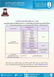 يسر عمادة شؤون القبول والتسجيل بجامعة الملك سعود أن تعلن عن الجدول الزمني لمهام الكلية في اعداد الجدول الدراسي للفصل الثاني 1442هـ كلمة العميد بسم الله الرحمن الرحيم تعتبر عمادة شؤون القبول والتسجيل من العمادات.
