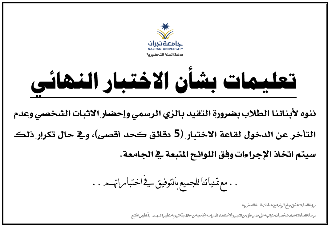 تعليمات الاختبارات النهائية