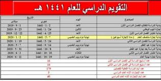 تعرف على التقويم الدراسي لعام ١٤٤١ بالتفصيل أعلنت وزارة التعليم السعودية عن التقويم الدراسي للعام الدراسي الجديد 1440 ـ 1441 هـ والذي يبحث عنه الكثير من أولياء ألأمور عنه بهدف معرفة موعد بدء الدراسة تفاصيل الإجازات.