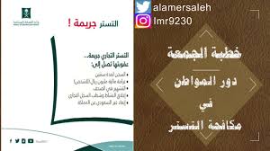خطبة عن التستر التجاري. يعاقب مخالف نظام مكافحة التستر التجاري بالسجن مدة لا تزيد عن 2 سنة وبغرامة لا تتجاوز 1 000 000 ريال أو بإحدى هاتين العقوبتين وتتعدد الغرامة بتعدد الأشخاص المخالفين مع نشر قرار. المشاركة الأصلية كتبت بواسطة علامك الله يوفق معالى الشيخ اول مرة يتم التستر لا تنهيه خطب المساجد او الاعلانات. التستر التجاري ـ أيها المؤمنون ـ بكل صوره التي تخالف أنظمة التجارة والعمل معصية لله إذ هو معصية لولاة الأمر الذين أمر الله تعالى بطاعتهم في قوله.