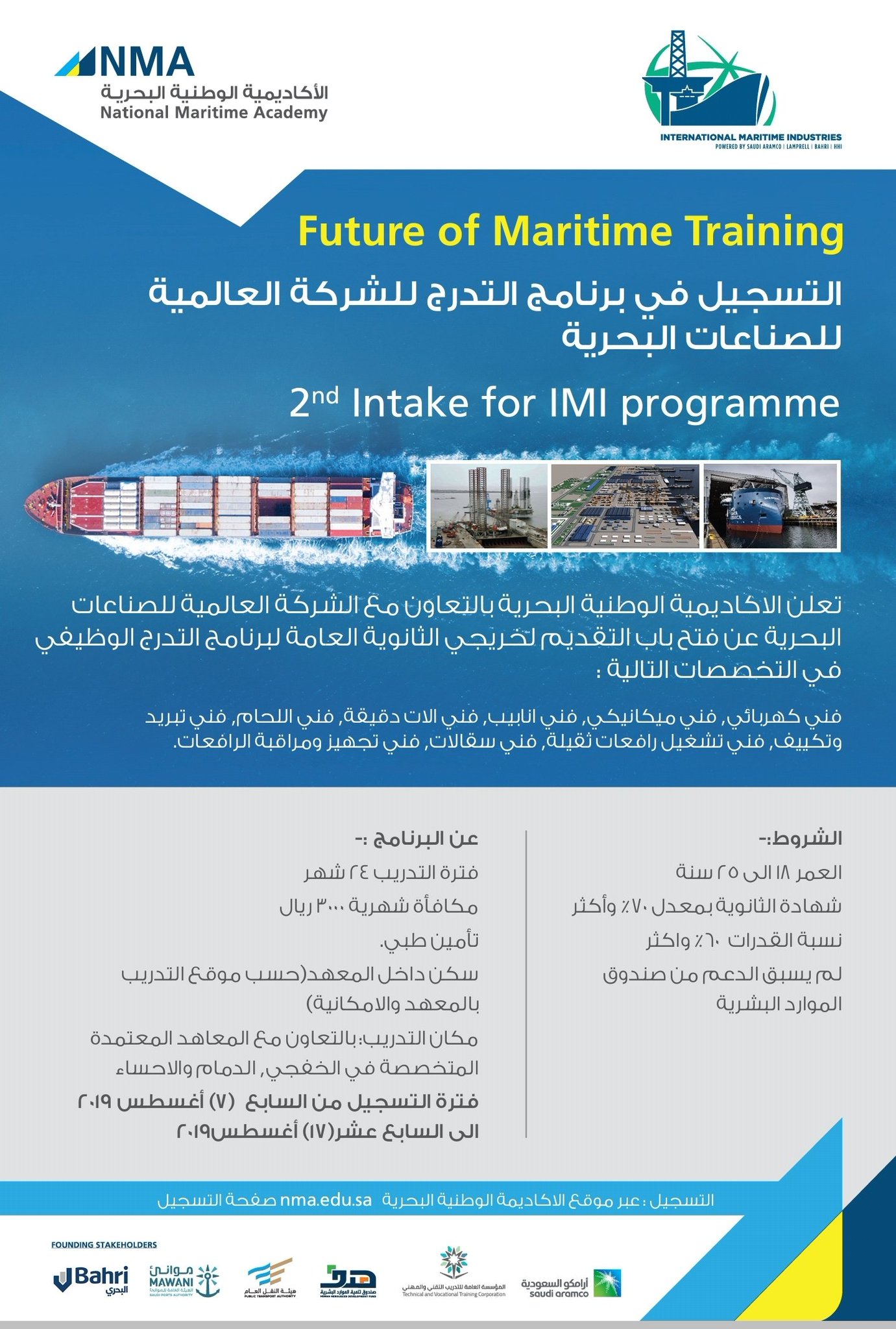 Nma الاكاديمية الوطنية البحرية. يكمل الطلاب بالأكاديمية الوطنية البحرية أيض ا الدورات القصيرة الإضافية الإلزامية المطلوبة للحصول على الشهادات في تخصص الهندسة أو الملاحة البحرية والمعترف بها من الهيئة العامة للنقل السعودي tga وهيئة خفر السواحل البحرية البريطانية mca والهيئة العامة للموانئ بالمملكة العربية السعودية spa ودعم صندوق الموارد البشرية hrdf و المؤسسة العامة للتدريب التقني والمهني tvtc. الأكاديمية الوطنية البحرية مؤسسة تدريب وطنية غير ربحية تهدف إلى تطبيق أعلى معايير الخدمات المهنية وتدريب وتأهيل الكوادر السعودية الناشئة وفق أكثر مستويات التدريب العملي والنظري كفاءة وجودة بما في ذلك الخدمات المتصلة بقطاع التدريب البحري. أعلنت الأكاديمية الوطنية البحرية فتح باب القبول لخريجي الثانوية علوم طبيعية لعام 2020م وتعتبر الأكاديمية إحدى مبادرات رؤية المملكة 2030 حيث تهدف إلى رفع مستويات وكفاءة الشباب السعودي وتزويدهم بالعتاد المعرفي المطلوب لتنمية سوق العمل وشغل وظائف قائمة على التخصصات المهنية المتطورة في التدريب البحري وذلك وفقا للتفاصيل الموضحة أدناه.